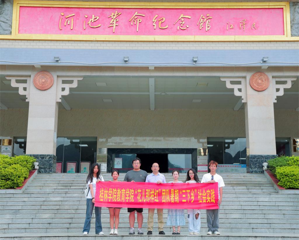 为深入学习习近平总书记关于红色资源的重要论述,追寻革命先烈足迹,传承红色基因,由教育学院2022级音乐学专业的5位同学组成的“花儿那样红”理论普及宣讲实践团于2023年暑期前往广西河池市金城江区、东兰县开展红色研学活动,以列宁岩、河池革命纪念馆、韦拔群故居、河池人民英雄纪念碑为实践教学地,探寻革命英雄韦拔群同志先进事迹。为了打破传统调研的固有模式,在指导老师的帮助下,该团队形成了一套集“访、学、研、宣”为一体的实践宣讲模式,通过走访、交流、学习、问卷、微视频、红色课堂宣讲等多个方面,搭载多种新媒体平台,多方位对实践过程进行宣传报道,提高了活动影响力,扩大了宣传覆盖力,让“行走的课堂”更加精彩。