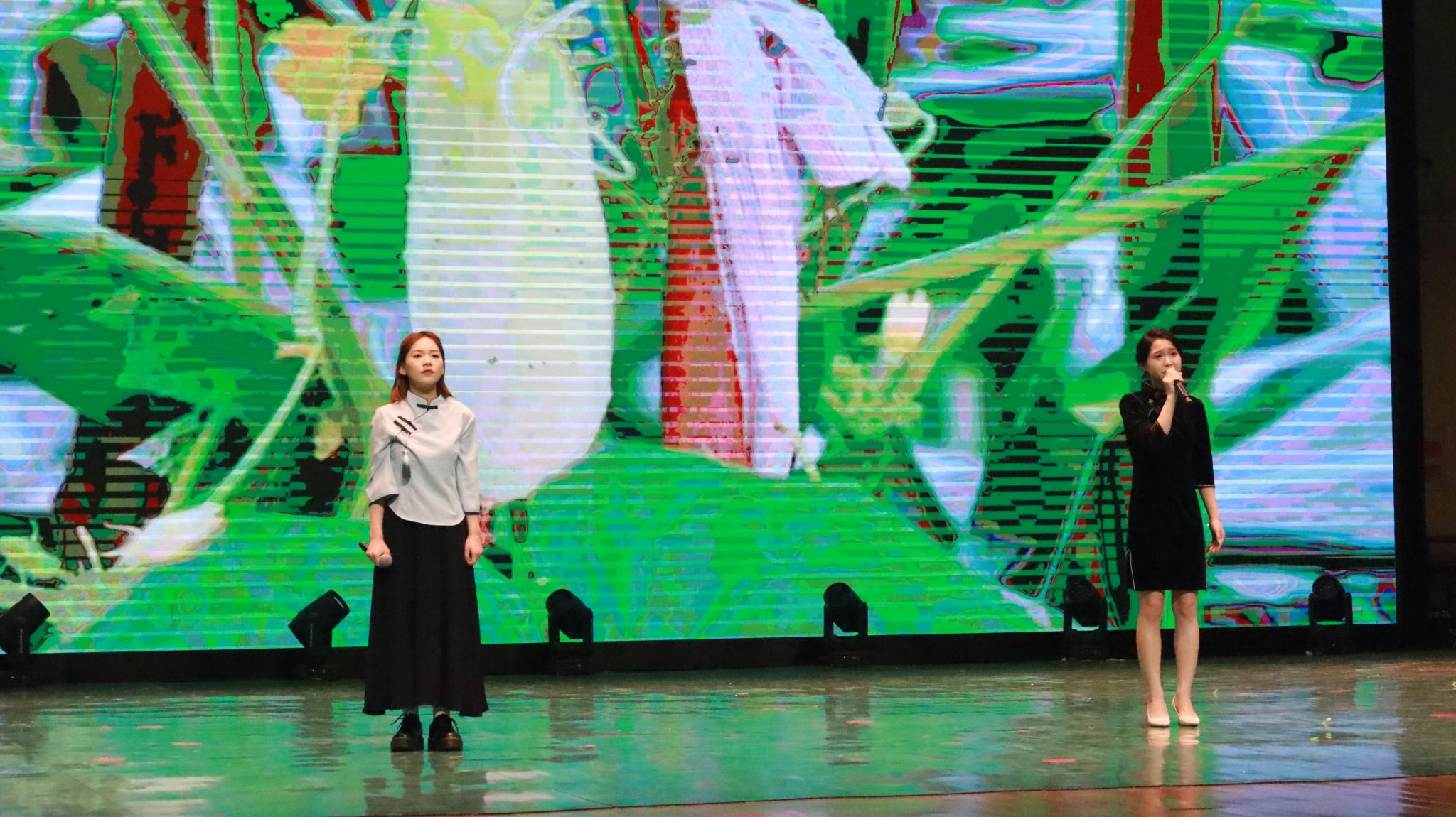 开幕式在闪狐舞团活力四射的开场舞《hands up》中拉开帷幕,动感节奏与青春舞姿迅速点燃现场氛围,尽显桂院学子朝气蓬勃的精神面貌。主持朗诵队带来朗诵《呼兰河传》,以深情语调、细腻情感带领观众走进文学世界,感受文字里的岁月温情;舞蹈队带来的古典舞《一桥枕月》婉约灵动、意境悠远,勾勒出月色映桥的唯美意境,展现传统舞蹈之美;戏剧《你记得我,我就活着》情感真挚、直击心灵,生动诠释铭记与坚守的力量;茶艺队以《茶承文脉,青春筑梦》为主题,将传统茶道与青春风采相融,行云流水的茶艺动作尽显中华茶文化的雅致与底蕴;雁声非专合唱团演唱的《火焰蓝》用歌声致敬逆火而行的消防救援人员,传递责任与担当;雁声合唱团合唱《慢慢喜欢你》和声优美、旋律舒缓,以温柔曲调诉说青春浪漫,赢得全场热烈掌声。整场演出涵盖舞蹈、朗诵、戏剧、茶艺、合唱等多种艺术形式,主题鲜明、内容丰富、精彩纷呈,充分展现了我校大学生艺术团的专业素养与桂院学子昂扬向上的青春风采,为现场观众献上一场高质量的视听盛宴。