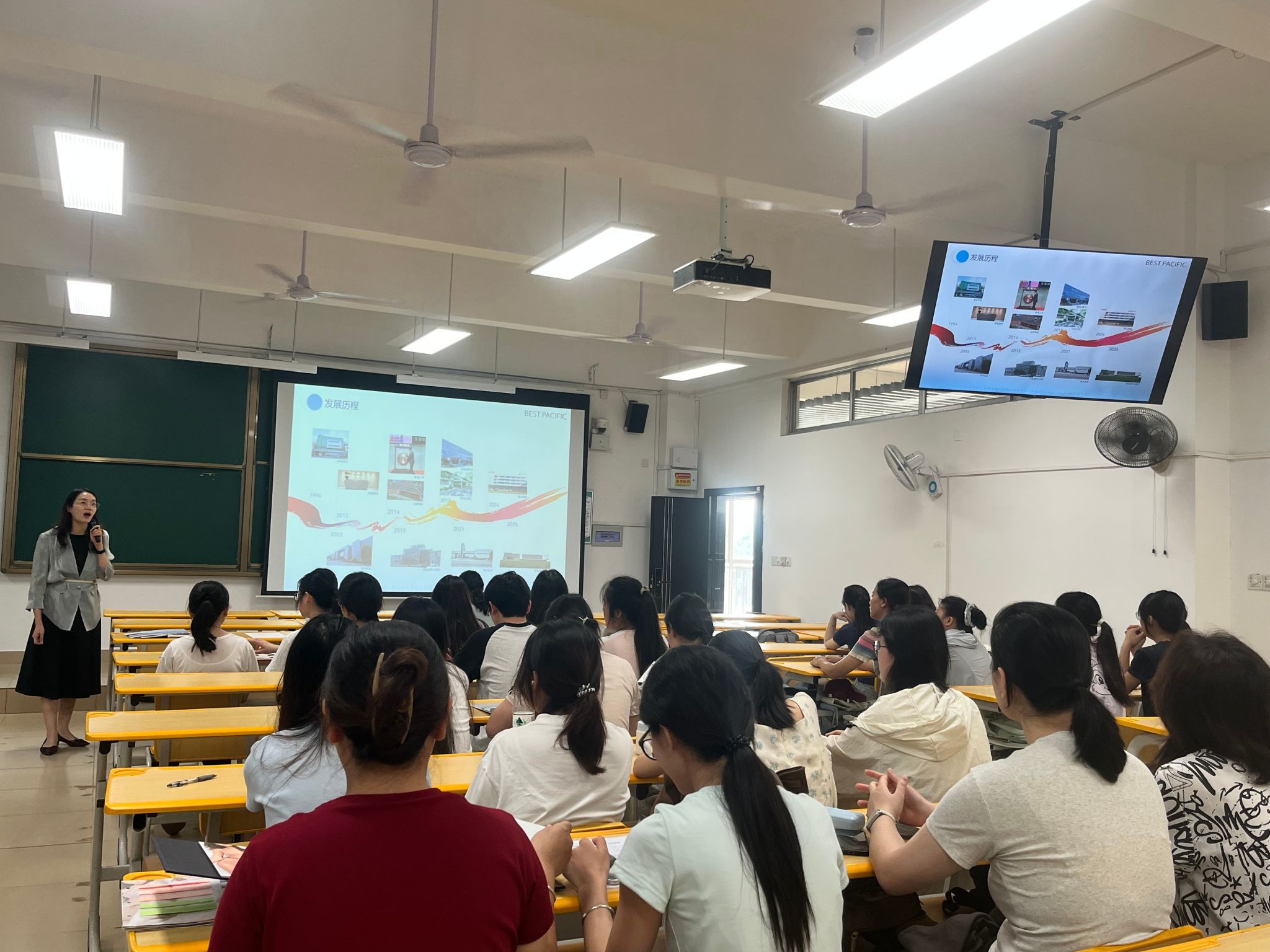宣讲会上,该公司海外招聘经理梁燕娟全面介绍企业发展历程、企业文化、业务布局与海外市场拓展情况,重点讲解越南语专业人才的需求岗位、任职要求、薪资福利及职业晋升通道,让学生清晰掌握企业发展前景与岗位信息。结合行业发展趋势与企业人才培养体系,她为学生开展针对性就业规划指导,分享专业知识运用、职场能力提升、职业目标规划等实用经验,耐心解答海外就业、岗位适配等疑问,现场互动氛围热烈。