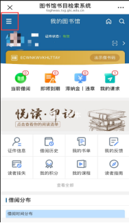 登录“我的图书馆”。登录账号及密码与原电子借阅证相同,原电子借阅证的账号为教职工的工号或学生的学号,初始密码为“姓氏第一个字大写首字母+学号(或工号)”;如密码已修改过,则用修改后的密码登录。