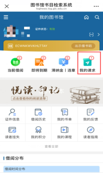 (二)通过微信公众号荐购图书的查询方式:打开桂林学院图书馆微信公众号,点击“服务门户”,在个人主页“我的请求”中查询荐购图书进度信息。(如荐购图书显示“入藏”,两日后可到A馆荐购书架借阅。)