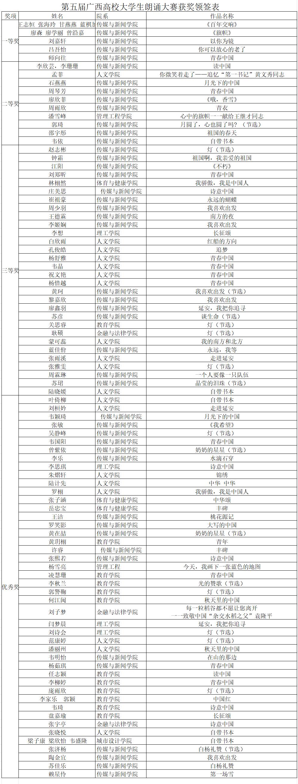 第五届广西高校大学生“悦读向未来 强国我担当”朗诵大赛校级获奖通知