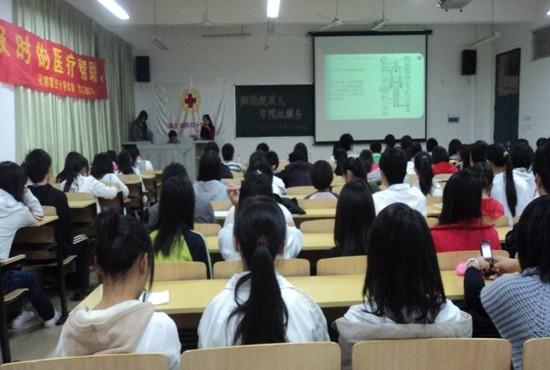 为协助我院第八届田径运动会的成功举办,我院医务室成员与社团联合会红十字会于2010年11月11日晚上19点30分在1316教室开展了一场主题为“助漓院健儿,为师生服务”的医疗保健、抢救、外伤包扎等常识讲座。本次讲座由医务室阳小花医生担任主讲,吸引了近一百名同学参加,其中包括了各系红十字会热心的社工医疗队成员。