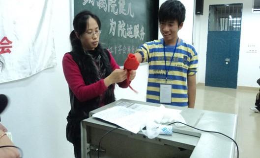 红会会干配合校医做现场“模特”演示