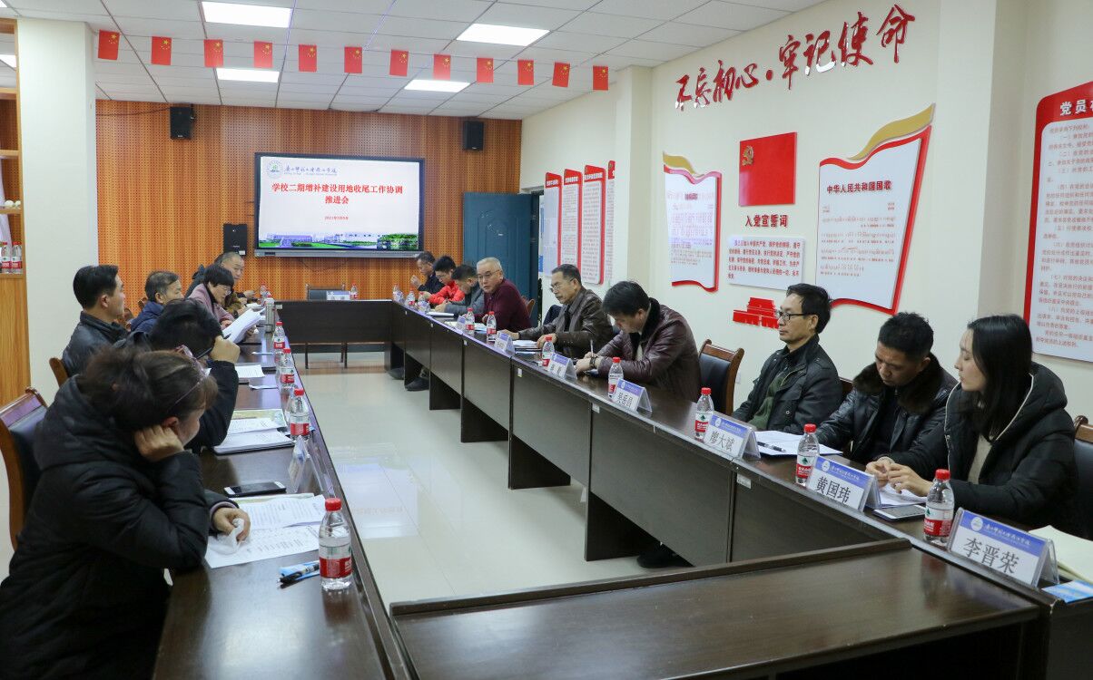 1月5日下午,学校在知善楼8312会议室召开二期增补建设用地收尾工作协调推进会。学校领导杨树喆、刘文革,雁山区领导莫连旺、李红、刘有文、欧双球,雁山镇领导唐亮、陈曦出席会议。学校党政事务部、后勤保卫处相关负责人,雁山区漓江学院征地项目全体成员、竹园村委相关负责人参加了会议。