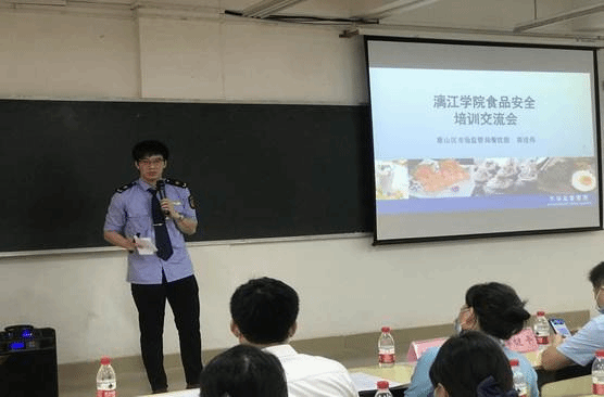为提高食堂员工食品安全意识和整体素质,确保我校饮食卫生安全,5月11日下午在至善楼1207教室开展“校园食品安全培训交流会”,邀请雁山区市场监管局副局长夏桂春、餐饮股股长郭佳伟、专员曾小娟来我校开展食品安全进行培训,同时出席本次活动有后勤保卫处副处长秦家荣、食管干事谭健平和食堂员工及各商铺承租户参加培训,活动由后勤保卫处副处长秦家荣主持。