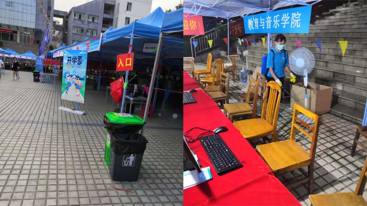 绿化保洁人员从校园环境,到学生宿舍和学生食堂,全范围无死角进行卫生清理。迎新过程中,加强流动检查,杜绝违规占道、乱扔垃圾烟头的行为。加强保洁与巡查力度,保证校园整洁。做好绿化剪修、桌椅摆放、报到点布置等一系列工作。