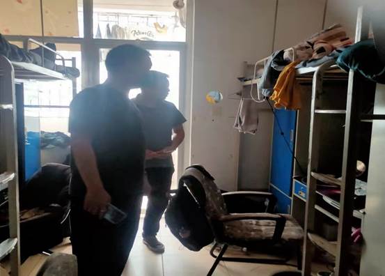 图:检查人员检查学生宿舍用电安全情况