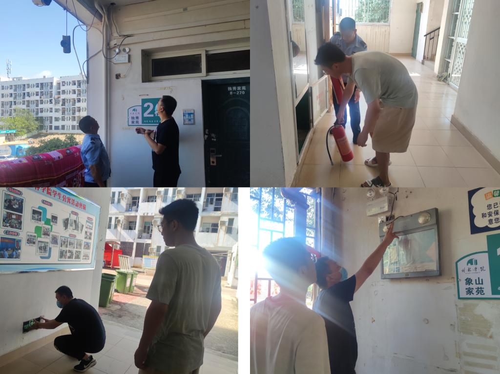 为确保新学期开学期间校园的安全稳定,强化安全管理,杜绝安全隐患,2022年8月26日,后勤保卫处组织对学校食堂、商铺、学生宿舍、绿化保洁、消防、教学楼等方面进行了安全大检查,并对检查中发现的问题和隐患指正,并要求及时整改。