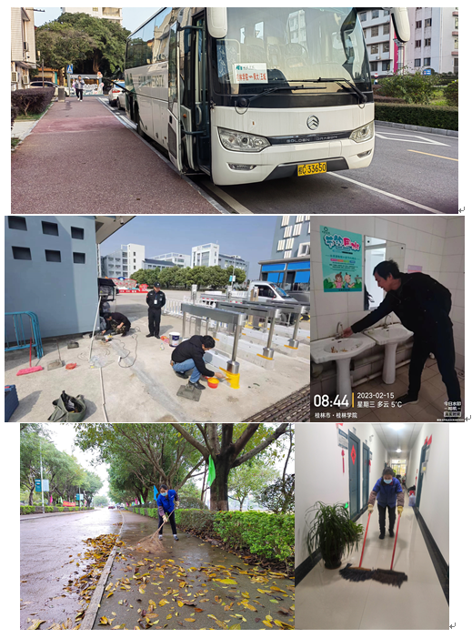 首先,乐善食府员工2月7日起分批次陆续返校返岗,对食堂进行油烟机清洗、卫生消杀、管道线路隐患排查等一系列卫生工作,同时对员工进行新学期安全教育和业务培训;商铺超市、餐饮人员积极做好店内卫生消杀、食品安全隐患排查、设备维护。其次,在假期期间完成校园部分道路、透水砖施工,做好宿舍内防火门更换以及校内部分广场补砖工作。校医务室也积极准备,提前整理药房,并做好消杀工作;为保障开学正常用车,校车队提前做好车辆检查,保证师生的出行安全;在开学期间,学校加强安保措施,加大重点部位和场所巡逻密度,将广大师生生命安全和身体健康落到实处,严防各类安全事故的发生;同时做好校园环境维护,假期内对校园绿化进行浇水和修剪,开学前做好全校全面大扫除,让师生体验一个美好,春意盎然的校园生活。