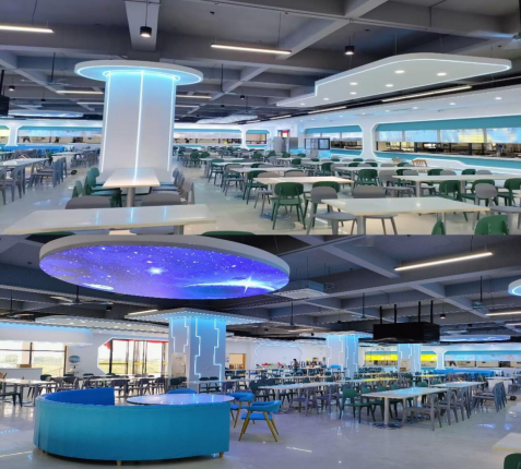 食堂利用暑期进行装修升级,借助“星空”艺术元素,将食堂焕发出全新的魅力。同时更新食堂布局,为师生提供更加舒适的用餐体验。