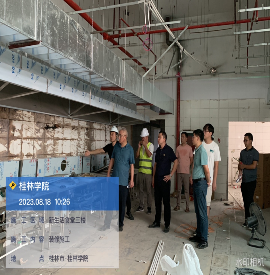 为确保我校2023年秋季学期开学饮食保障工作安全平稳有序开展,暑假学校乐善食府装修改造至今,学校副校长刘文革多次带队深入到装修改造现场进行监督检查。学校办公室、后勤保卫处相关负责人随行参加。