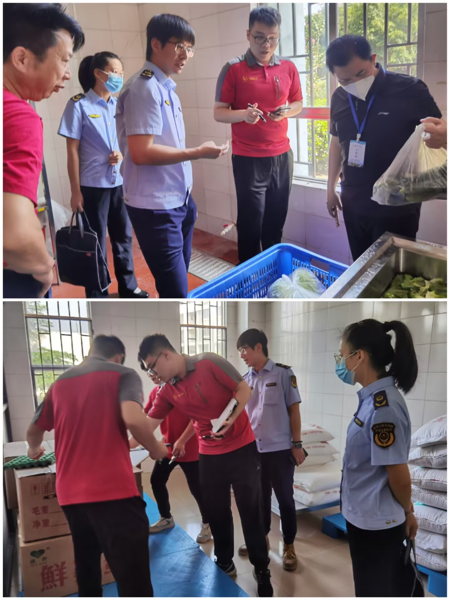 2023年9月5日上午,广西质检院与雁山区市场监督管理局股长郭佳伟、庄蕙如等人莅临我校进行校园食品安全抽检和指导,全面排查食品安全风险隐患,切实保障广大师生饮食安全。学校后勤保卫处副处长秦家荣、干事谭健平及食堂负责人陪同接待检查。