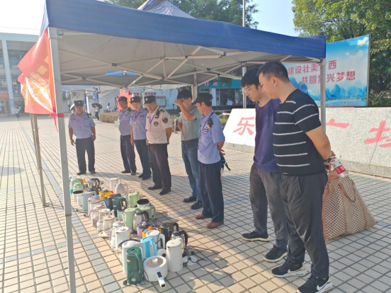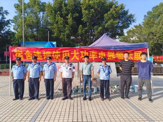 为了切实提高学生们的消防安全意识,检查组将查获的大功率电器在学校广场进行警示展,同时告诉同学们在宿舍使用违规大功率电器的危险性,希望同学们自觉遵守学生公寓安全管理规定,树立“生命至上,安全第一”的防范意识。