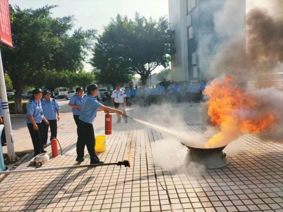 活动开始,安保队长就保安人员应具备的基本消防安全素质,平时工作中如何开展防火巡查、消除火灾隐患,以及如何正确使用灭火器材进行了详细讲解,要求全体保安人员从思想上提高消防安全意识,重视消防安全,提高消防安全技能。随后,保安队长现场演示了灭火器和水带的使用方法,并让参加培训的保安人员轮流体验正确连接水带、水枪和使用灭火器的实际操作,亲自体验现场灭火的过程。