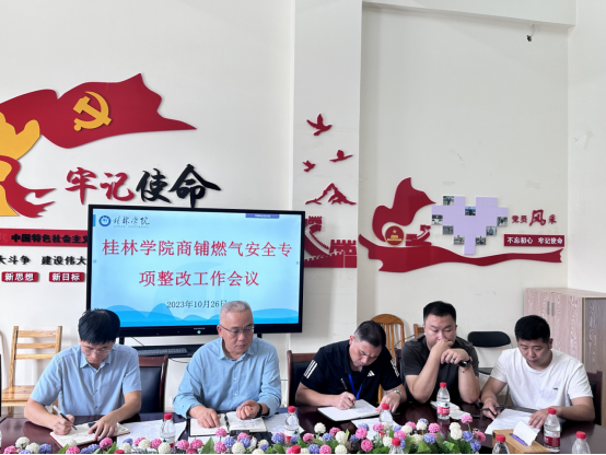 10月26日上午,在乐善楼205会议室召开桂林学院商铺燃气安全专项整改工作会议。会议由副校长刘文革主持。后勤保卫处相关人员及使用燃气的商铺承租户参加会议。