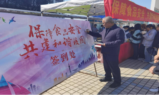活动现场,学校副校长刘文革亲自宣传食品安全和签到台签名,后勤保卫处副处长秦家荣以及食堂、商铺代表介绍了食品安全基本常识对师生身体健康的重要性,在现场写下有关“食品安全”的宣传标语,积极转发朋友圈让更多的同学参与到活动中来。此次活动不仅强化了食堂、商铺的主体责任,增强了同学们食品安全意识和自我维权意识,更体现了全校师生人人关注,支持,参与食品安全的良好氛围。