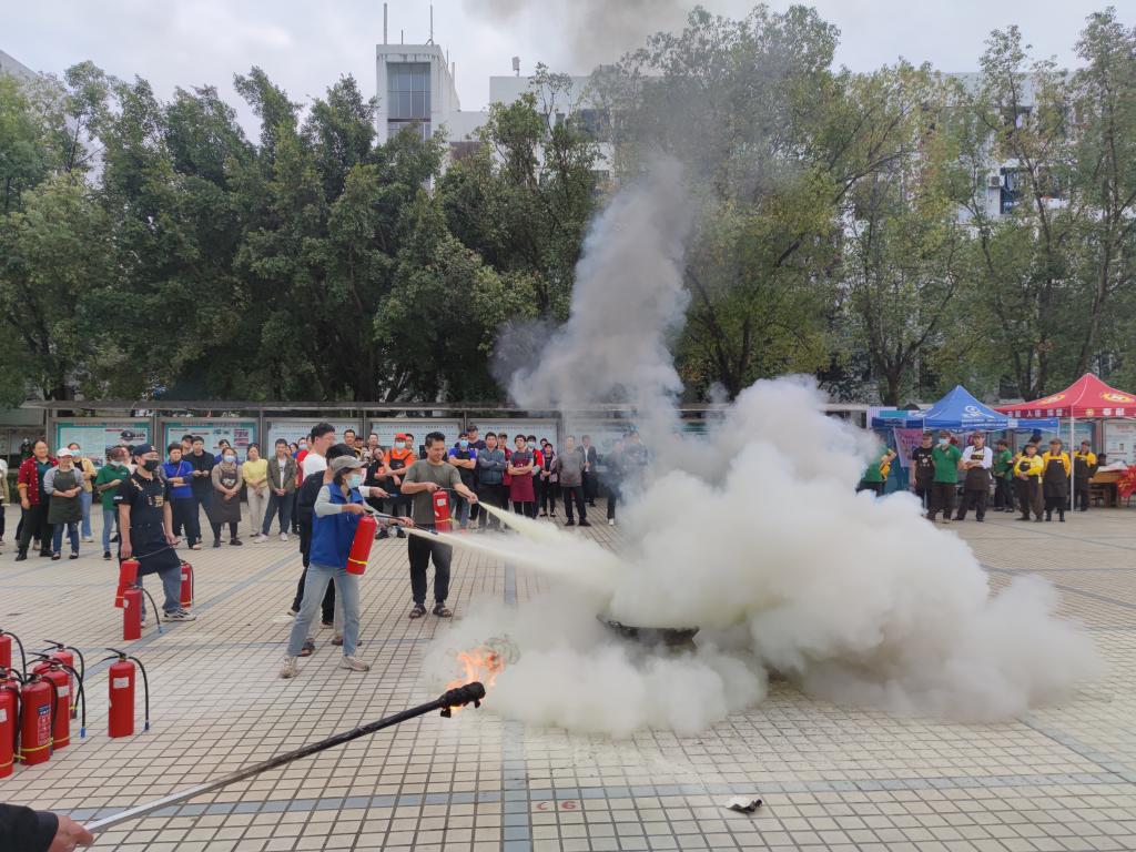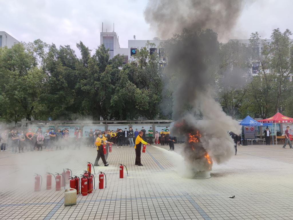 随后,讲解员围绕日常防火基本常识、消防器材使用方法等方面进行了深入浅出地讲解,重点分析了学校当前常见的消防安全隐患以及火灾防范重点,并现场演示干粉灭火器的使用方法。本次演练中,全体参演人员分批次对灭火器的使用进行了演练操作,按照“一提、二拔、三握、四压”的使用流程,一一进行体验。