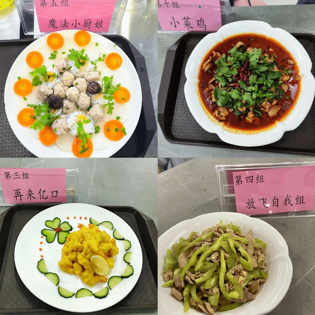 大赛按照公平、公正、公开原则进行各项现场监审、线上线下方式共有258组参赛,10组参赛队伍是通过激烈竞争入围决赛,脱颖而出,在比赛环节每小组烹饪一个菜参赛,每个小组各显身手,在规定的时间内精心烹饪,简单的食材很快就变成了一道道色香味俱全的“佳作”。评委们也忙得不亦乐乎,看色泽、闻味道、评技艺,以“色、香、味、形、新”为原则对每一道菜品进行细致的评分。最终,第五组“魔法小厨娘”,第十组“小菜鸡”第二组“畅通无阻”脱颖而出,赢得本次大赛的一二三等奖。与此同时,校内优秀商铺为大赛评委提供的优质菜品以及同学们精彩的才艺表演为厨王争霸赛添上了浓墨重彩的一笔。