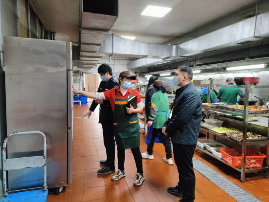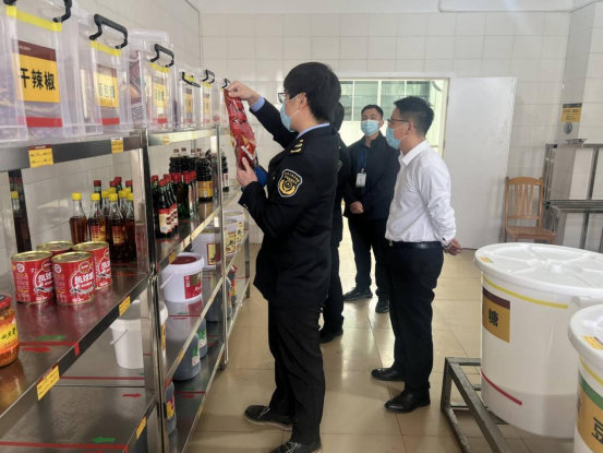 首先,检查人员通过实地检查和翻阅了材料以后,现场听取了后勤保卫处关于2024年春季学期开学以来的食品卫生安全管理等工作情况的汇报,并咨询了一些日常监督管理的情况。其次,桂林市雁山区市场监督管理局按照《食品安全法》、《食品安全监督抽检实施细则》等相关要求,对我校食堂及校园商铺的食品原材料进行采集抽检,着重对食堂、商铺的食品仓库及冰箱冰柜、清洗间、烹饪间、备餐间等工作区域进行检查,并对食品原材料采购索证索票、进货台账与餐具消毒记录进行核查。