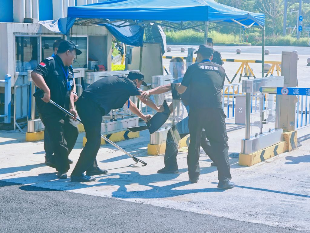 为有效防范校园内发生突发伤害事件,切实保障2024年秋季平稳入学,确保我校广大师生生命安全,8月26日上午,学校后勤保卫处组织安保人员开展了校园反恐防暴安全演练活动。