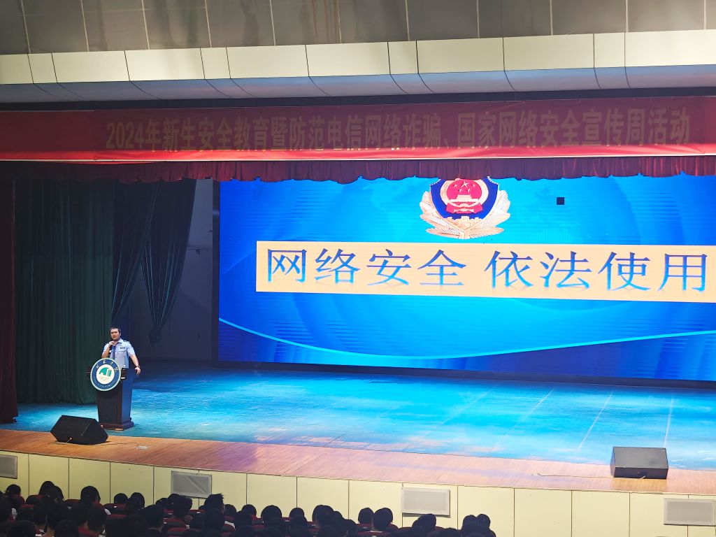 警官们结合自身工作经历及相关典型案例,着重围绕网络安全、消防安全、交通安全、远离邪教、抵制毒品等方面为全体新生上了一堂生动的安全教育课,希望同学能够从思想上、态度上牢固树立安全防线,在未来的生活和学习中,时刻将安全放在首位,确保生命财产安全。