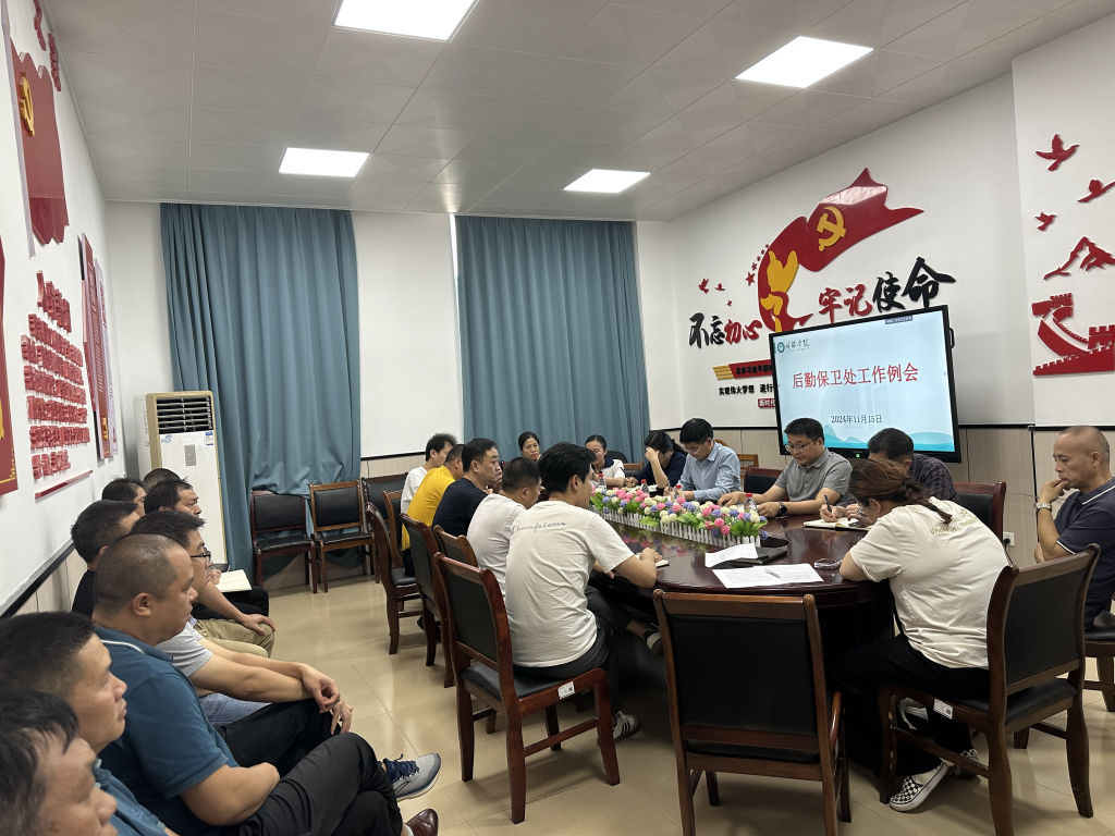2024年11月15日下午,后勤保卫处在乐善楼205会议室召开工作例会,后勤保卫处全体教职工参加会议,会议由后勤保卫处处长主持。