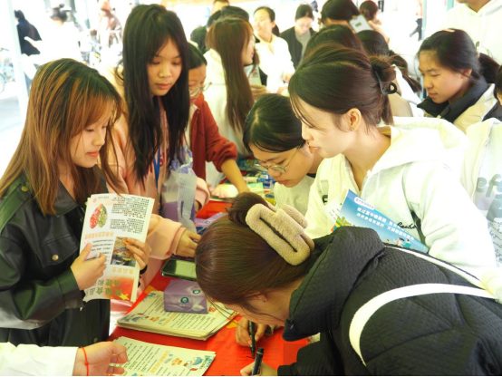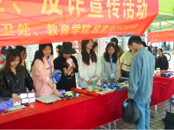 11月28日上午,后勤保卫处、教育学院、雁山区卫生健康委和桂林市医保局雁山分局在乐善广场联合开展校园防艾滋病、食品安全、消防安全、反诈宣传活动。