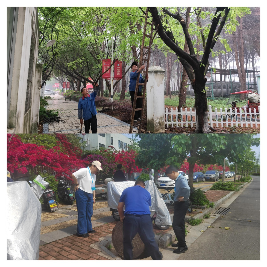 此外,绿化保洁办积极开展节前安全隐患排查,重点处理了校园松树和行道树的枯枝断枝,并对雨水污水井进行了全面排查,确保假期校园环境整洁。