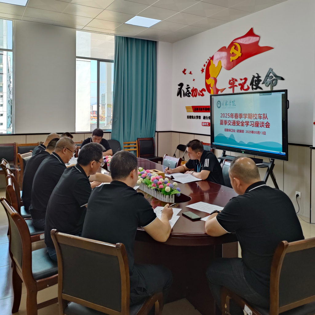 为深入贯彻落实教育部办公厅关于做好2025年学校防灾减灾救灾和自治区教育厅关于做好近期安全风险防范工作的通知要求,5月13日上午,后勤保卫处\武装部在乐善楼205会议室集中开展2025年春季学期校车队夏季交通安全学习座谈会,会议由后勤保卫处\武装部副处长主持。