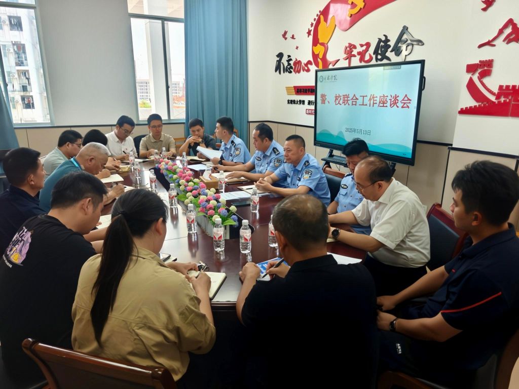 5月13日下午,学校与桂林市公安局雁山分局就加强校园反电信网络诈骗宣传工作召开警校联合座谈会。学校副校长刘文革,桂林市公安局雁山分局领导黄国兵、贺文雄,各二级学院党总支书记,雁山镇派出所、后勤保卫处、学生工作处有关负责人参加了座谈会。会议由后勤保卫处负责人主持。