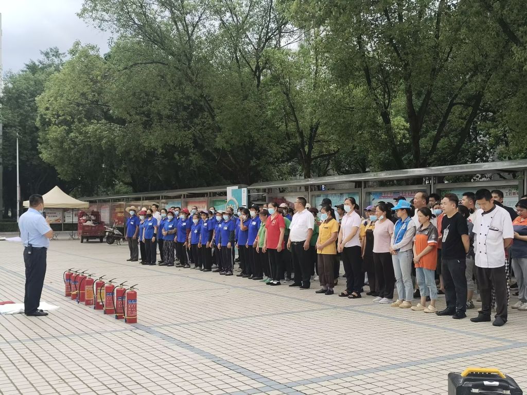 进一步加强学校消防安全工作,有效预防和减少校园安全隐患和火灾事故的发生,营造安全稳定校园环境,5月22日下午,后勤保卫处开展校园从业人员消防安全技能培训及演练活动,后勤保卫处副处长及相关负责人、绿化保洁、食堂及商铺从业人员150余人参加了此次活动。