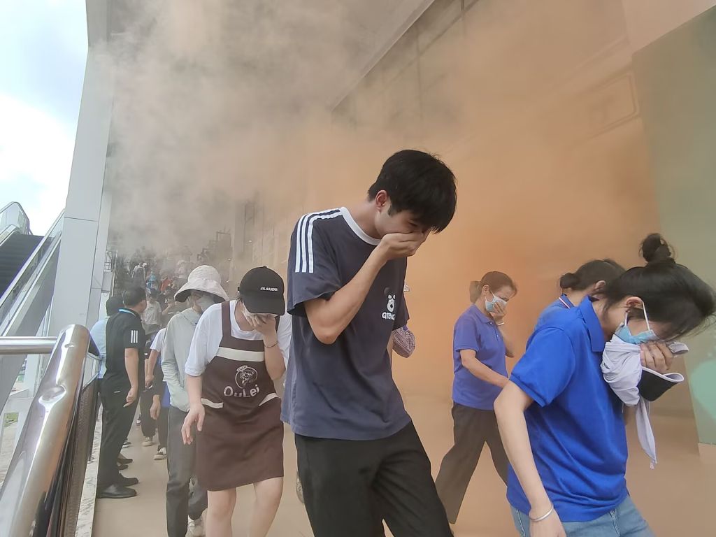 演练开始前,讲解人员按照疏散逃生要领、人员安排、疏散路线进行了部署。参演人员按预先设定的活动方案迅速就位,随着“火灾”警报声响起,在工作人员的引导下,以低姿快速、有条不紊地进行疏散撤离,迅速到达指定安全位置。
