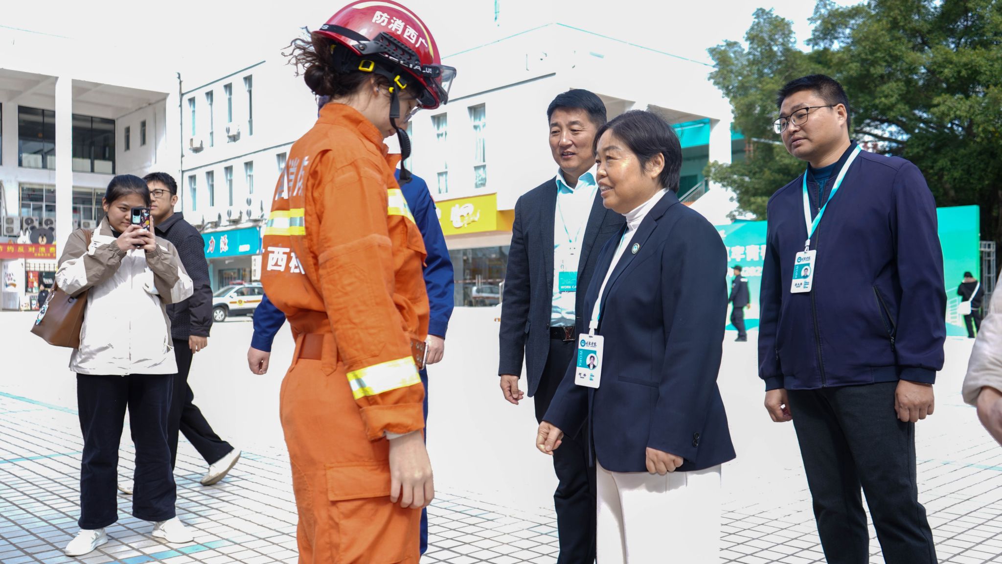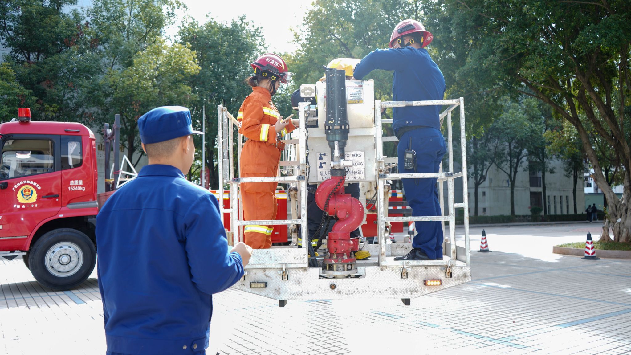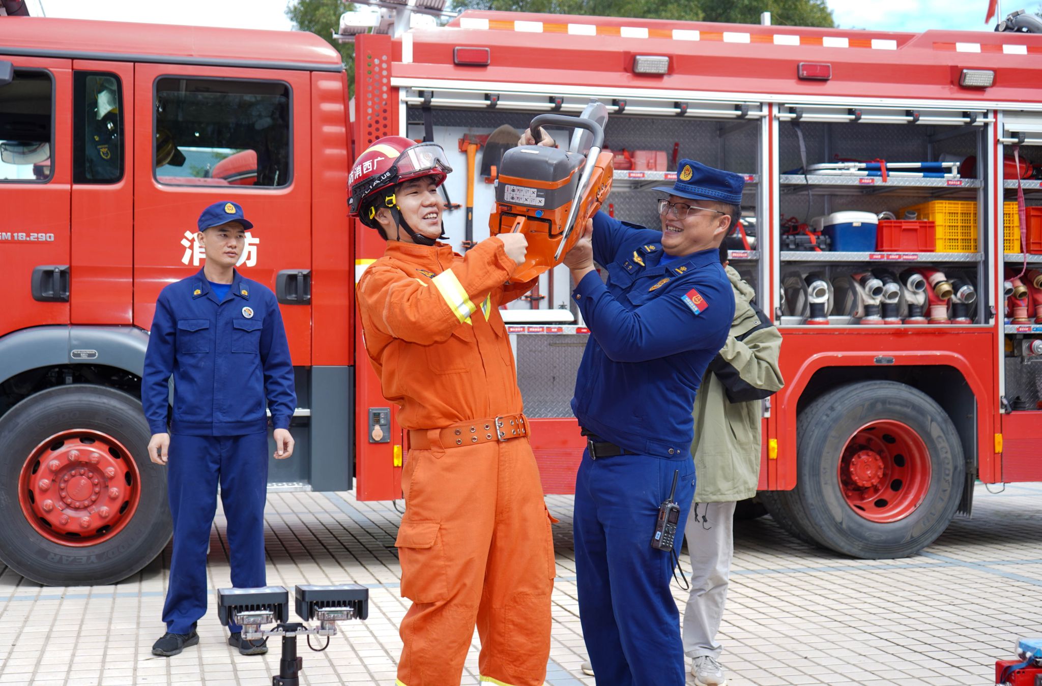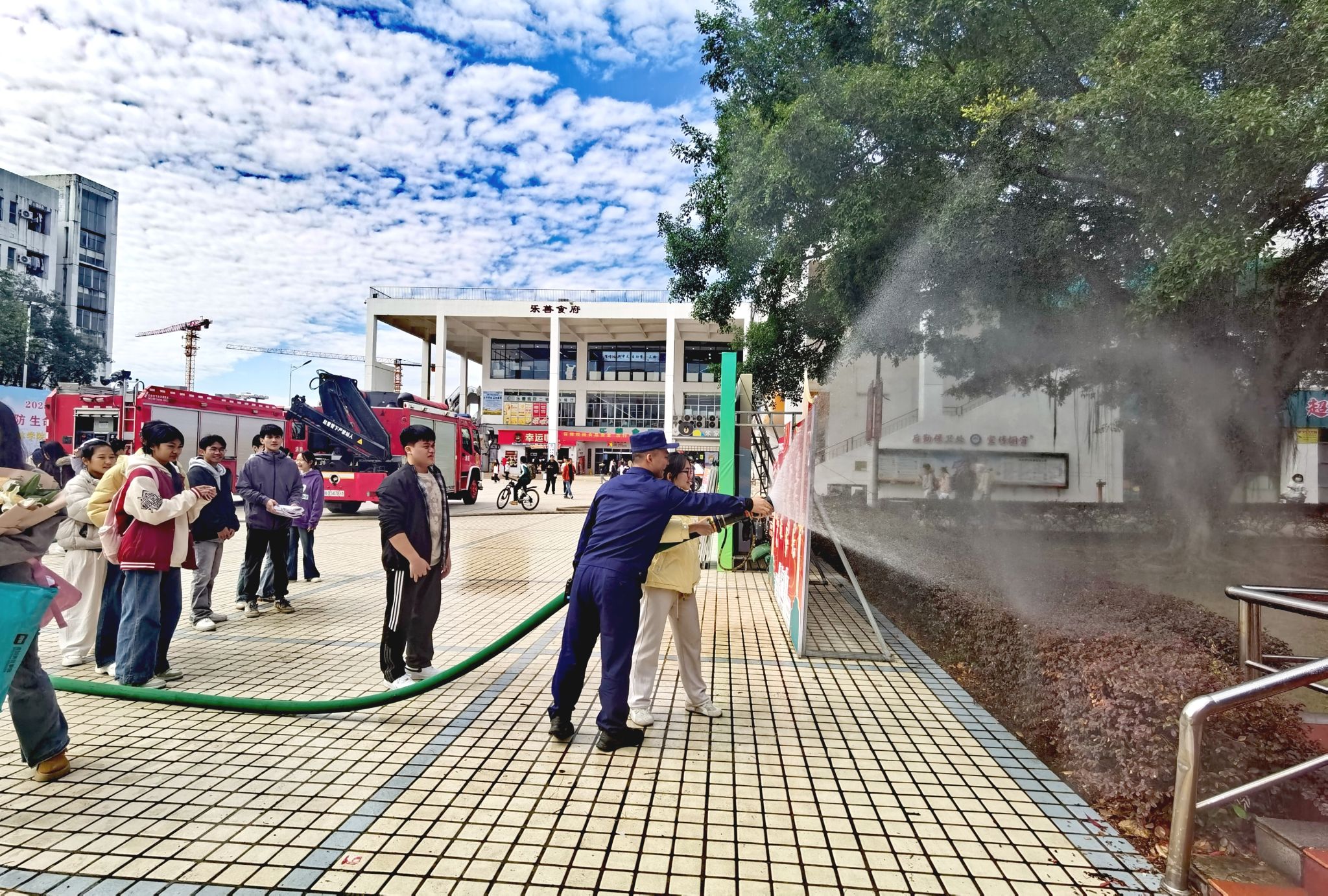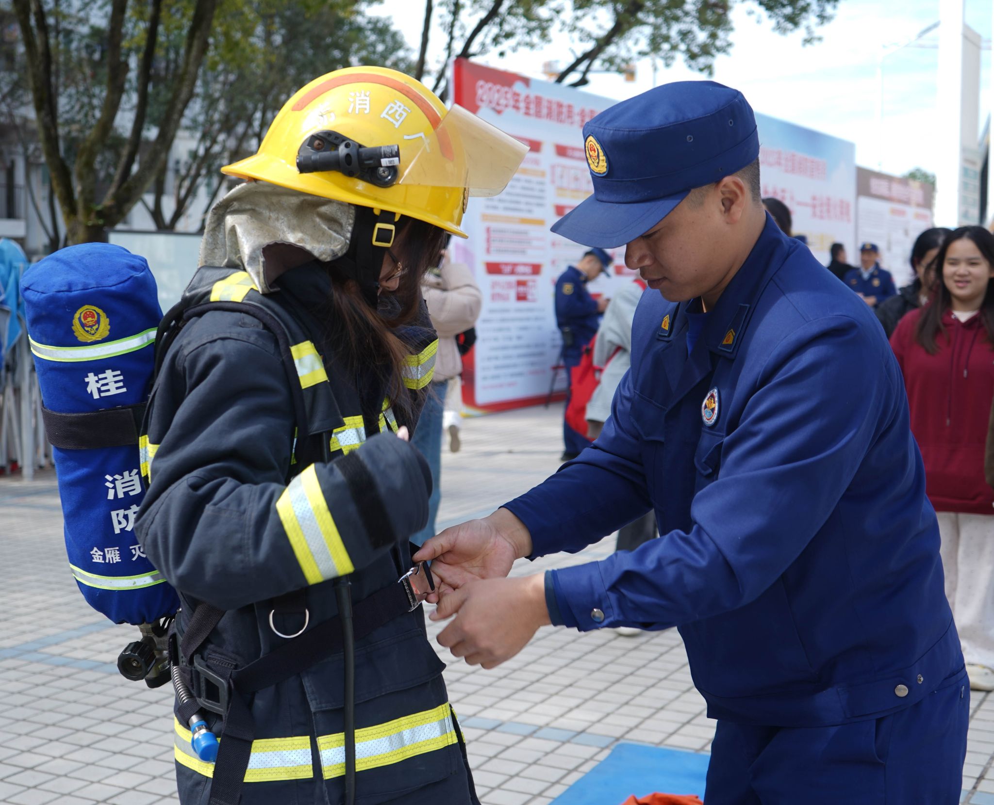 四是消防车、消防装备体验活动,消防队员现场讲解消防车的功能、各部位名称及用途,并演示了消防车出水、泡沫喷射等操作技能。在消防队员的指导下,师生体验消防服的穿着、空气呼吸器的佩戴与使用、破拆工具操作等内容,亲身感受消防装备的功能和作用,了解消防装备在火灾救援中的操作使用。同时,消防队员还结合实际案例,为师生解答火灾预防、应急处置等方面的疑问,进一步加深师生对消防安全工作的认识和理解。