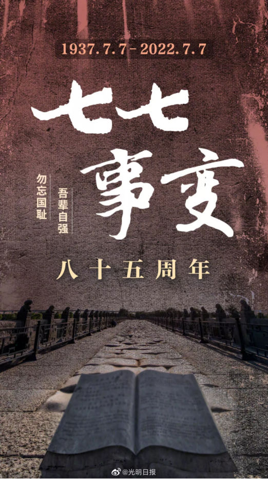 今天是“七七事变”爆发85周年纪念日,通过学习,我们认识到今日中国,是先辈以鲜血换来的,那段历史,我们不能忘记、不敢忘记!勿忘国耻,吾辈自强,我们要时刻警醒自己现在的生活来之不易,珍惜现在的工作和生活环境。