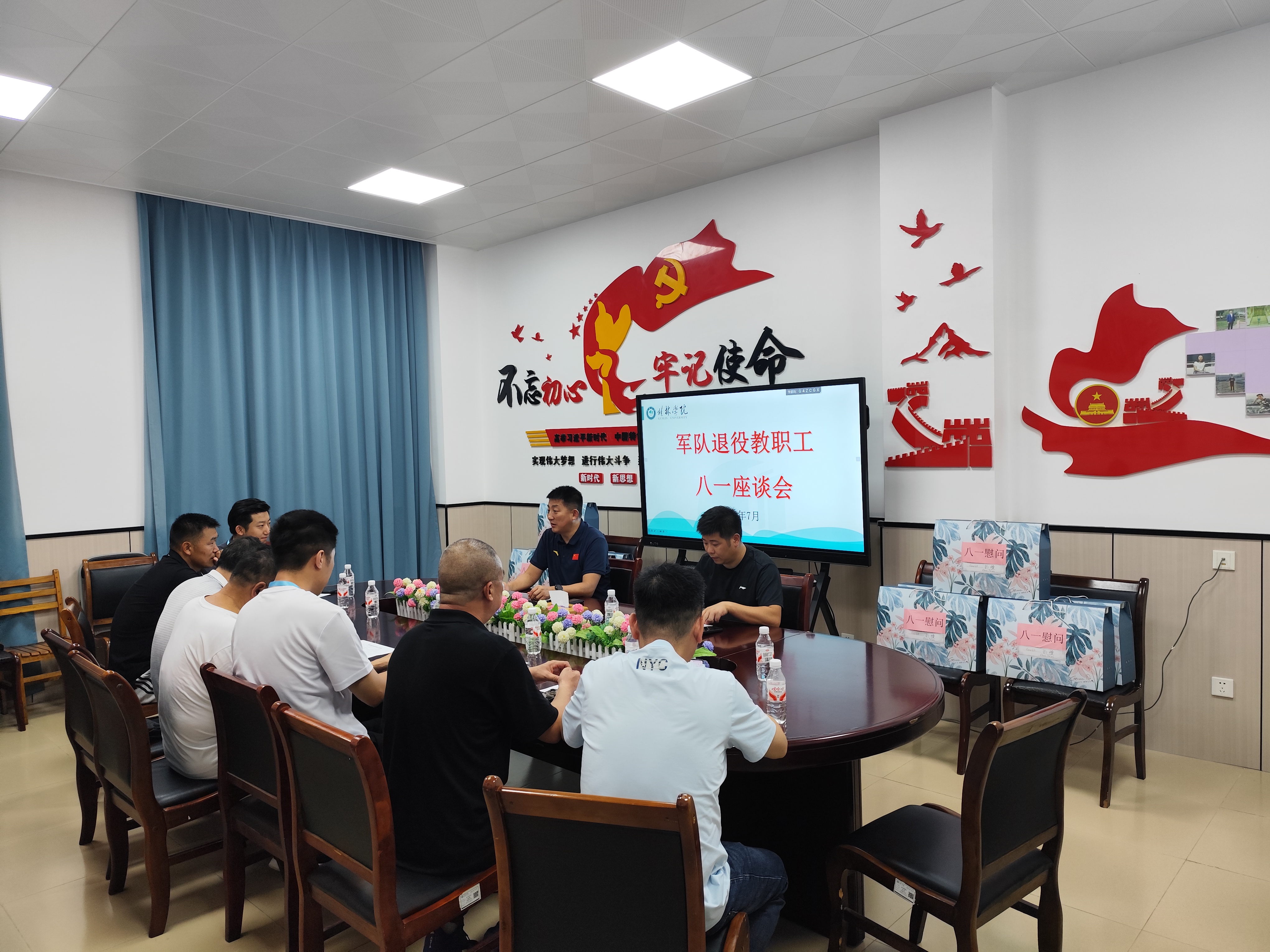 昨日携笔从戎铸军魂,今朝三尺讲台勤耕耘。在第98个建军节即将来临之际,为弘扬拥军优属和尊师重教的优良传统,学校党委武装部在乐善楼205会议室,以“情系桂院·共话发展”为主题,召开了在学校工作的军队退役教职员工“八一”座谈会。