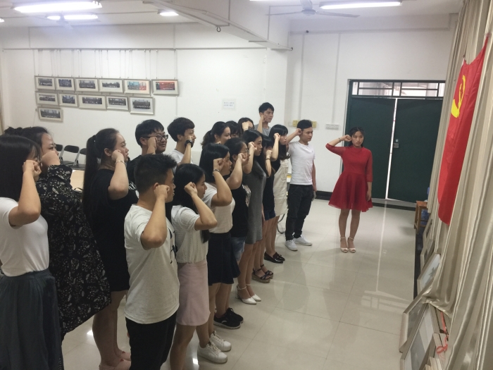 6月20日下午,在艺术工厂213会议室,全体毕业生党员、预备党员参加了活动。活动的第一项是重温入党誓词,领誓人周海燕的带领下,全体党员举起右拳,面向鲜红的党旗,庄重宣誓“……时刻准备着为共产主义事业奋斗终身!”响亮的誓言在会议室里回荡。