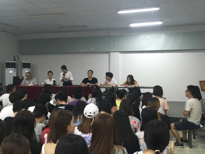 当天晚上,在艺术工厂132教室,分别召开了2014、2015、2016三个年级的开学第一次学生会。为了解决场地问题,三个年级分别安排在晚上6:30、7:30、8:30三个时间段召开。