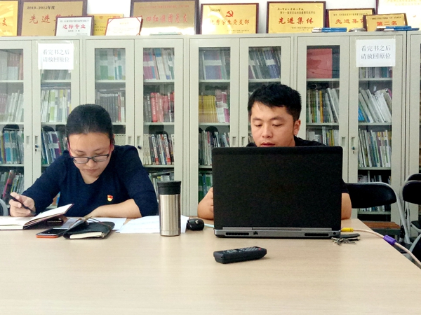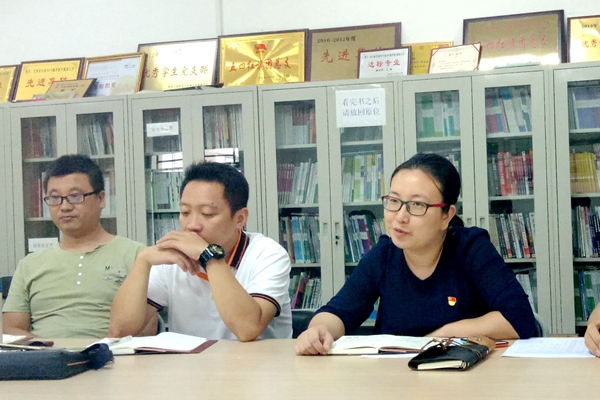 图:教工党支部书记贺雷宣读党日活动文件