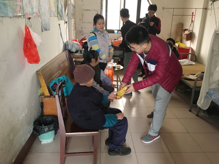 将近两个小时的活动,能感觉到同学们的到来,老人们非常开心,他们的笑容一直洋溢在脸上,拉着同学们亲切攀谈,同学们也把自己的学习情况、社会的发展等等外界的变化告诉老人们。即使有些老人与学生的交流不是很通畅,但还是能感受到老人们的热情和兴奋。有的老人聊到了激动的时候,流下了热泪。