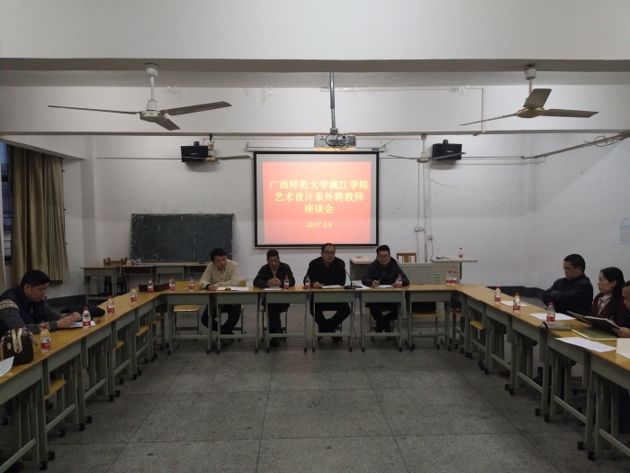 2017年3月9日,艺术设计系组织召开了外聘教师座谈会,全国高校思想政治工作会议的精神和学校党委有关意识形态领域的工作要求做了传达,艺术设计系领导班子全体成员参加了座谈。