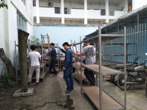 近日,在系党总支的安排下,由学生党支部组织党员、预备党员、入党积极分子开展了美化教学环境,整理艺术工厂的公益劳动。艺术工厂的废弃的学习材料和闲置的器材比较多,长期堆积在雕塑工厂院子里,从外观上看,影响艺术工厂的美观;同时有的器材的放置也影响走廊的通行。部分党员同学觉察了这一问题,主动向党支部提议,组织学生党员进行一次大清理。几位老师认真看了场地,合理地安排了工作程序,并找到了卫生工具,并确定了闲置器材的放置地点;学生到场以后,大家热火朝天的干了起来。