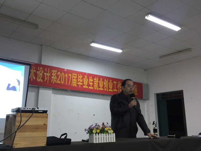 图:我系党总支书记周杰给同学们介绍当前就业形势