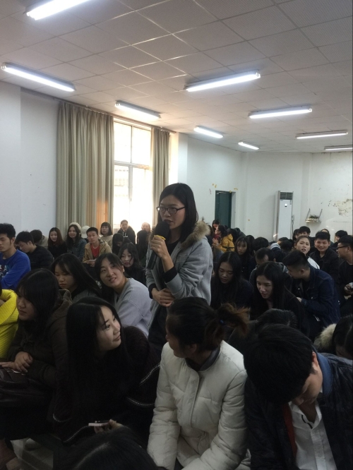讲座中阳老师始终与学生保持着一种互动的状态,精彩的讲座赢得同学们一阵又一阵的掌声。