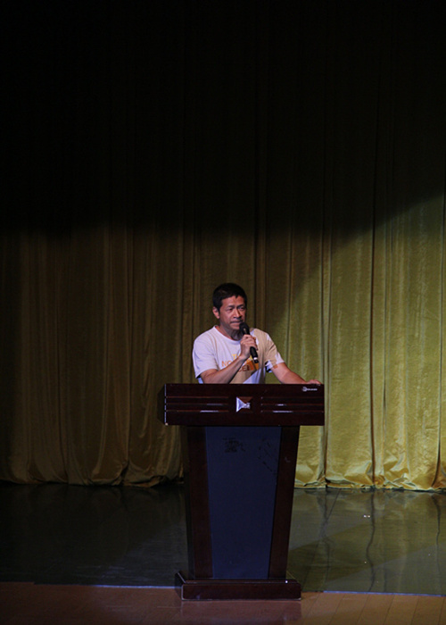 系领导和师生代表纷纷上台发言。首先上台发言的是艺术设计系主任曾子杰老师,他表达了对新生的欢迎,同时表示有信心带领艺术设计系教师团队,陪伴大家渡过美好的四年大学生活,把学生培养成专业合格、品德优秀的的建设者。随后,高年级学生代表2014级学生高源做了发言,他用自己的亲身经历告诉大家,要积极参加社团活动,锻炼自己,勤奋才能变得不平凡,珍惜时光才能开拓新的境界。2016级新生张帅代表新生发言,他表示要放远眼光,多多磨练,让自己变得更成熟。最后,系党总支书记周杰副教授上台致辞,他对同学们因为信任而选择漓江学院表示感谢,也欢迎大家加入拥有广西区特色专业的艺术设计系。艺设系年富力强的教师团队,会为每一位同学插上一双矫健而丰满的翅膀,他鼓励同学们加强自律,“不能决定太阳什么时候升起,但要决定自己几点起床。”