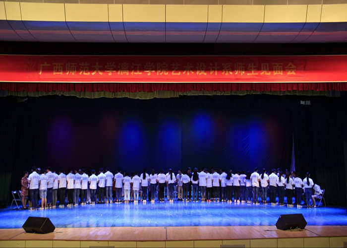 活动的重头戏是向2016级同学介绍全系的教职工。老师们分为6个团队分别登台与同学们见面,依次是领导团队、辅导员与行政团队、室内设计教研室团队、景观设计教研室团队、视觉传达教研室团队、公共动画教研室团队。通过主持人和相关负责人对团队的介绍,同学们了解了这是一个富有实力和活力的团队,对自己的未来充满了信心。