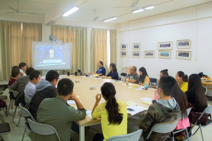 图:艺术设计系全体教工党员观看习总书记考察北京八一中学的新闻报道