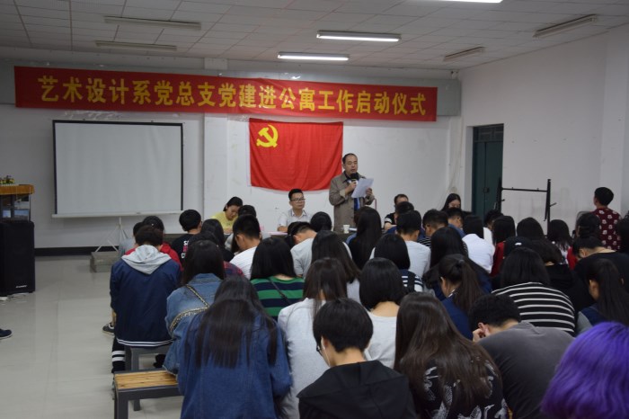 经过开学以来的认真筹备,艺术设计系学生公寓党建工作框架基本搭建完成,10月20日晚,系党总支组织举办了隆重的启动仪式。