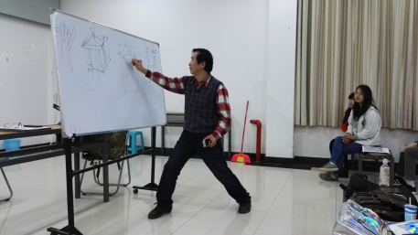 罗克中老师先后出版了《钢笔风景画技法》、《钢笔速写技法》、《钢笔画写生》、《广西民居写生》、《罗克中钢笔画写生》、《钢笔画写生技法与表现》等钢笔画个人专著共九种, 曾在桂林、南宁、广州、上海、深圳、香港、荷兰鹿特丹等地举办个人画展。此次“绘生活 画速写 做设计” –建筑速写专题讲座, 目的是着重培养学生手绘创新、审美、形象思维等能力,罗老师运用丰富的手绘技巧,配合以往作品演示,结合精炼的语言讲解,其得道之处令人回味无穷。罗老师从建筑速写画的工具、材料,到钢笔画的基本技法讲解,以轻松睿智的解答博得了现场每位学生的热烈掌声。