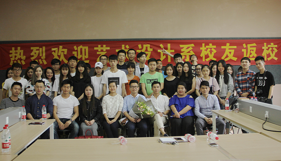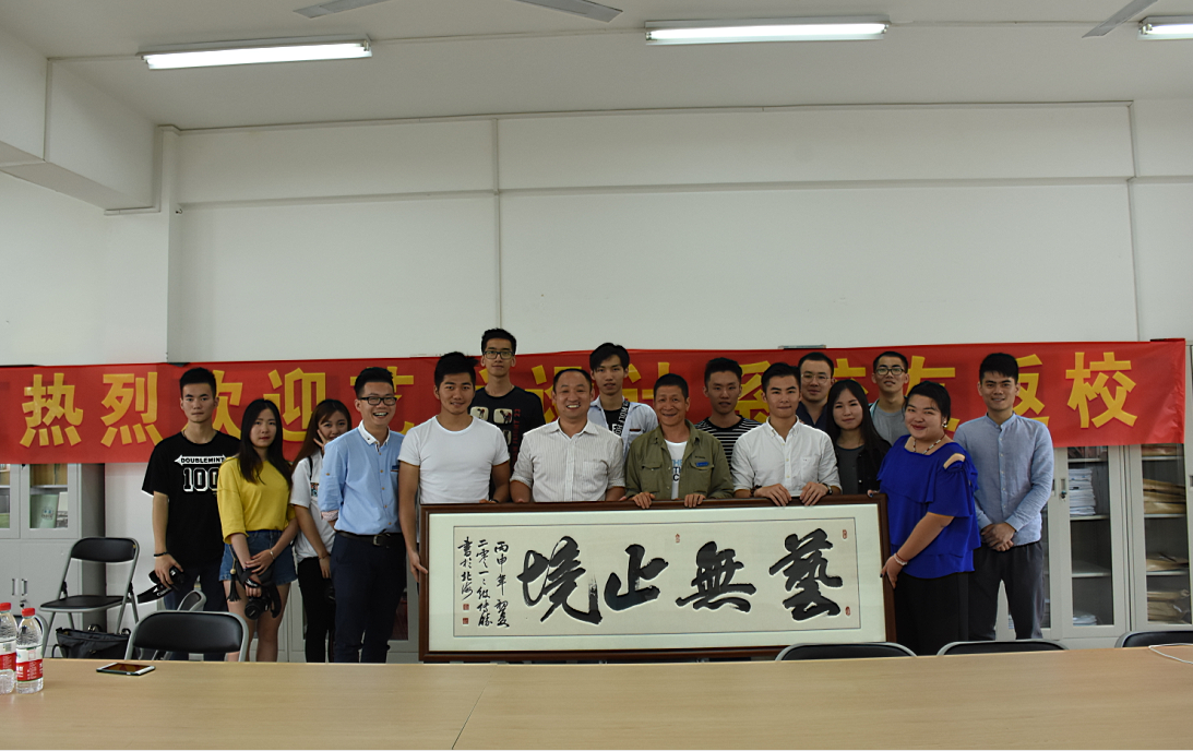 三、开友谊花:为了密切与广大校友的联系,促进校友间与母校间的情谊,艺术设计系组织了两场校友的座谈会。返校校友向学校汇报了工作期间的酸甜苦辣,回忆了在校期间的点点滴滴,感悟在漓院度过的四年青春,感谢老师的包容与教诲,并向母系捐赠了2011级系友顾传胜的书法作品《艺无止境》;中国美术家协会会员,我系2010届毕业生、教师李娜佳通过我系向学院捐赠了其艺术作品《上善若水》,表达对学院“向善”校训的敬意及对母校的感恩之情;校友们还向师弟师妹们介绍了自己的大学经历及告诫师弟师妹在大学期间应该重点学习的内容。艺术设计系主任曾子杰老师向校友介绍了学院及系部发展情况,向全系校友表达了良好的祝愿,对校友百忙之中返校回家表示感谢。
